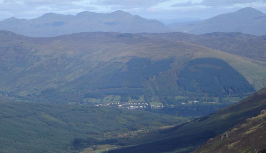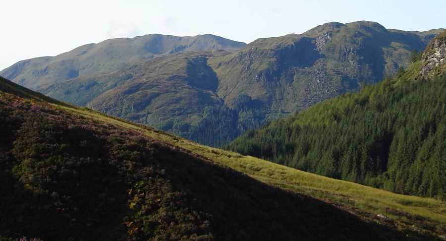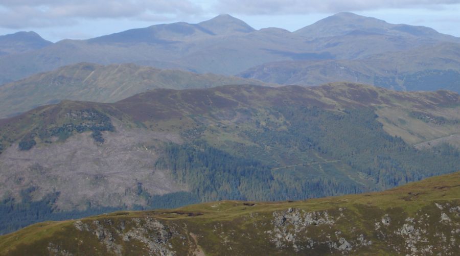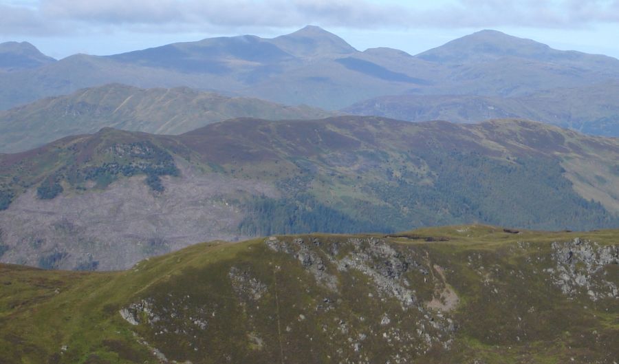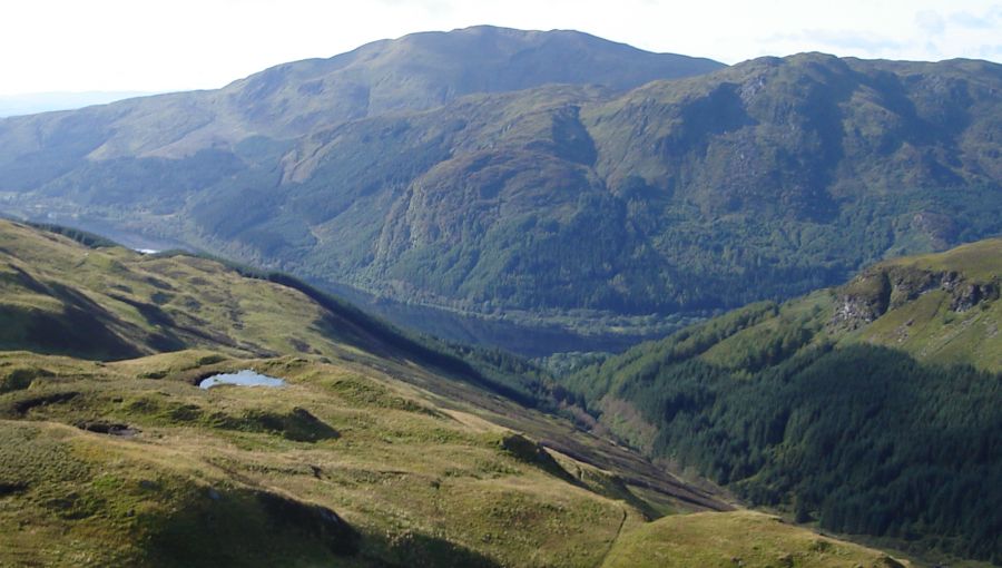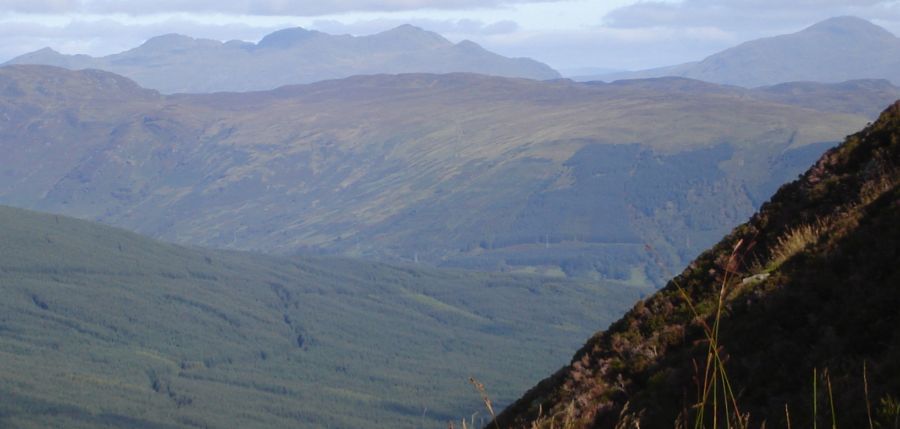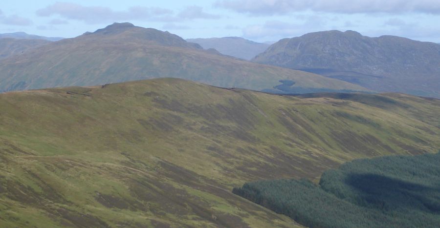 A Photo Gallery of an ascent of the Corbett Beinn Each, adjacent to Stuc a Chroin above Loch Lubnaig in the Southern Highlands of Scotland The summit of Beinn Each provides a 360 degree panoramaextending from the Firth of Forth, via the Campsie Fells & Dumgoyne, Ben Ledi, Ben Lomond, Ben Vane, Stob Binnein & Ben More, the Tarmachan Ridge, and the Ben Lawyers Group to the neighbouring Stuc a Chroin ![]()