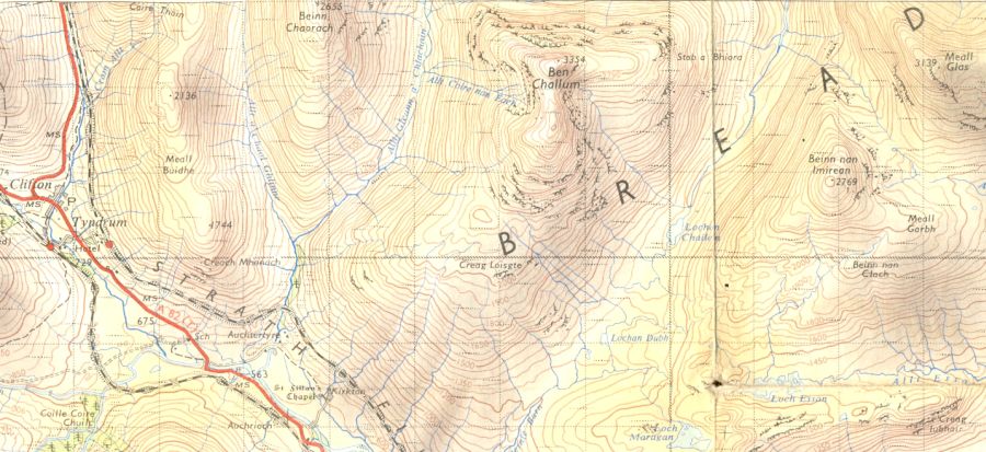 and climbing the NW ridge of Ben Challum