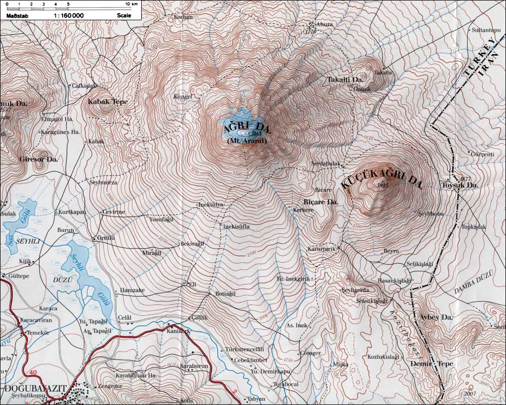 Map for Mount Ararat ( Agri Dag ) in NE Turkey